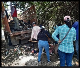 Año 2021 LIMPIEZA DE BASURERO CLANDESTINO UBICADO EN ORILLA DE LÍNEA FÉRREA, CON EL APOYO DE MINISTERIO DE AMBIENTE Y RECURSOS NATURALES Y MUNICIPALIDAD.