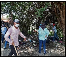 Año 2021 LIMPIEZA DE BASURERO CLANDESTINO CON EL APOYO DE EMPLEADOS MUNICIPALES EN LA ALDEA EL ESPÍRITU SANTO.