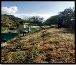 Año 2021 LIMPIEZA Y MANTENIMIENTO EN EL LUGAR DE PLANTA DE TRATAMIENTO DE DESECHOS DE AGUA RESIDUALES EN LA ALDEA EL ESPÍRITU SANTO CON EL APOYO DE EMPLEADOS MUNICIPALES.